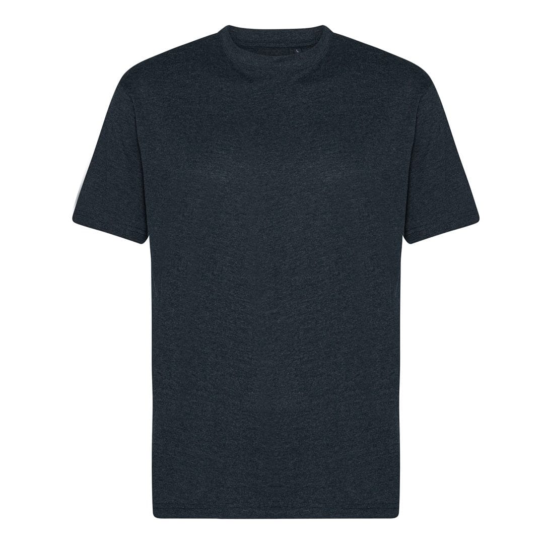 Das Cam-Uni-Shirt besteht aus 1001T3T Bio-Baumwolle. Der Rundhalsausschnitt ist mit einem Halsbündchen versehen. Dieses ist mit einem 1 cm hohen 1x1-Baumwollrippstrick eingefasst, der mit einer Doppelnaht fixiert ist. Ärmel und Saum sind ebenfalls mit einer schmalen Doppelnaht abgeschlossen. Das Shirt ist rundgestrickt, Kindergrößen haben Seitennähte.