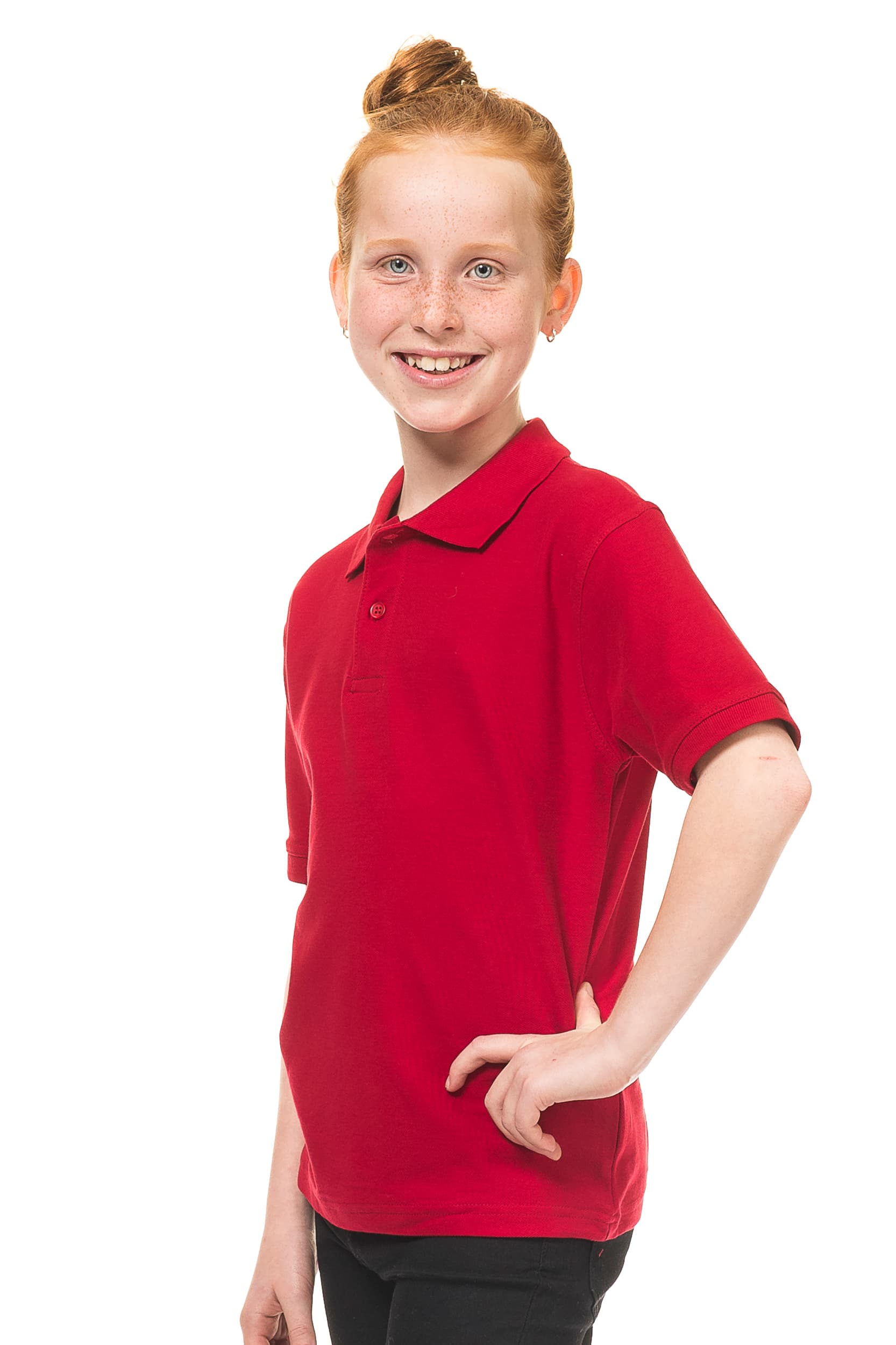 Our uni-color polo is suitable for both men and women. It has a classic fit and is available in 17 colors and 14 sizes, from size 2 years up to 3XL. In black, it's available up to size 6XL. A women's model that complements this polo is the "ladies polo shirt.".