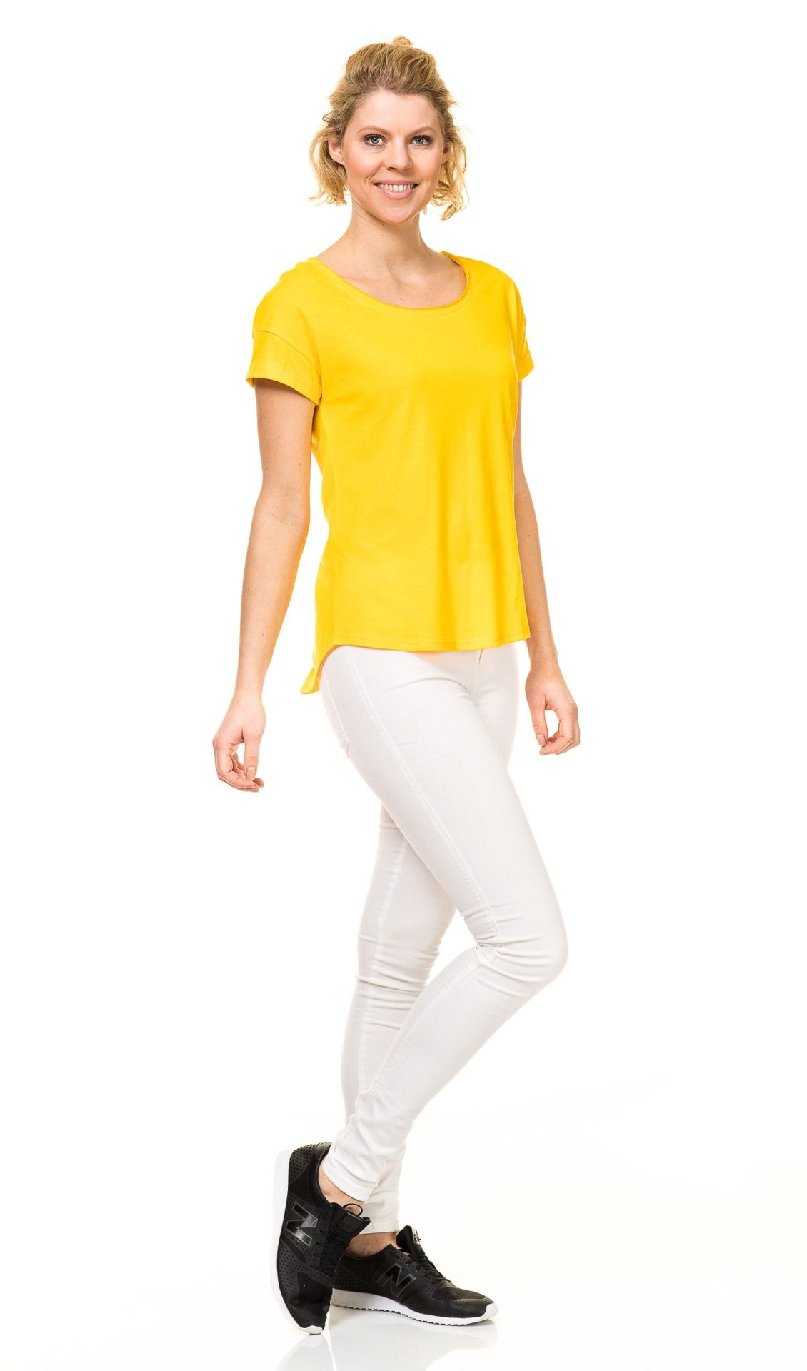 Mooi dames t-shirt met losse fit. De achterkant is rond en iets langer dan de voorkant. Dit kleed mooi af en geeft een casual uitstraling. Fijn lichtgewicht katoen, single jersey 145 g/m².